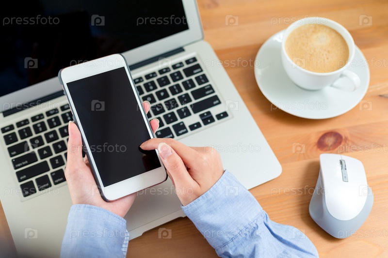 Девушка работает за смартфоном