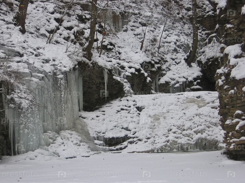 Замороженный водопад в горах Кавказа