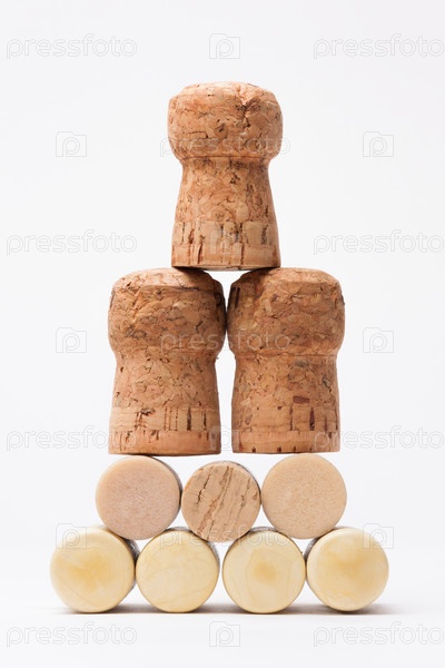 Пирамида из пробок на белом фоне