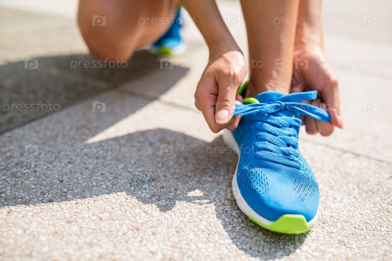 Женщина завязывает шнурки