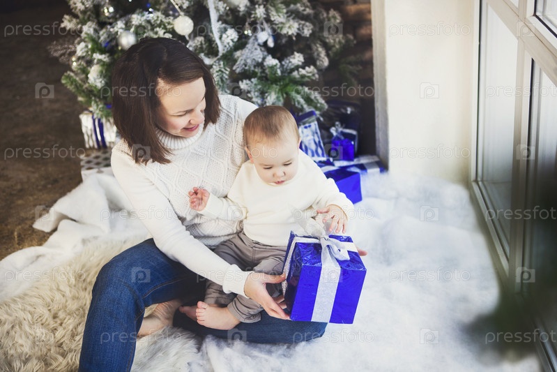Мать и сын с рождественским подарком