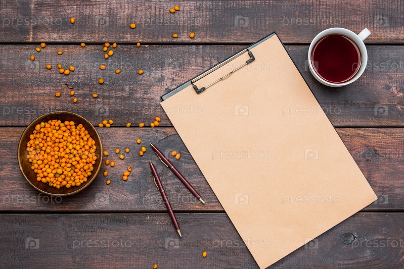 Планшетка и чашечка чая на столе