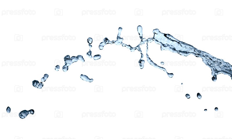 Брызги голубой воды на белом фоне