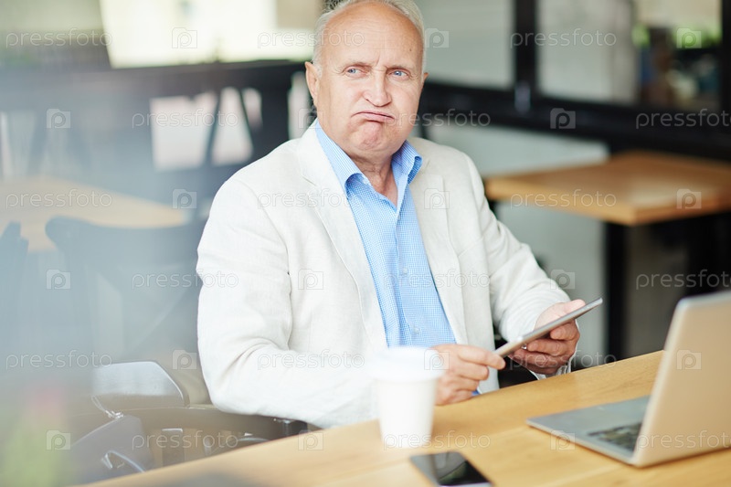 Пожилой бизнесмен в кафе