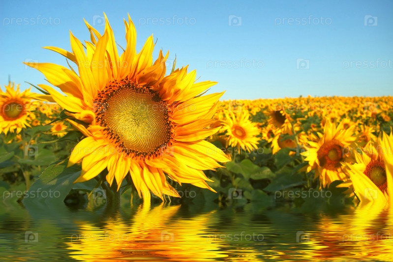 Поле подсолнухов над водой