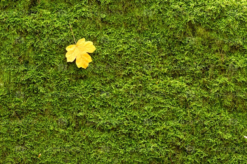 Желтый лист на зеленом мху
