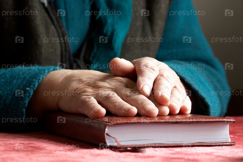 Руки пожилой женщины на Библии