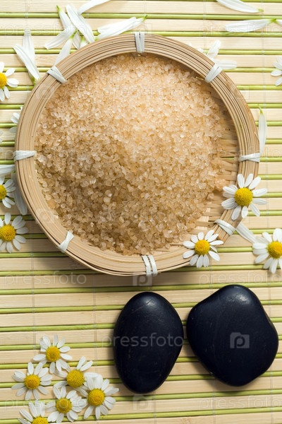 Соль для ванны и камни для СПА массажа на бамбуковой салфетке