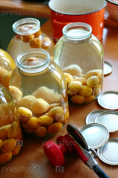 Абрикосовый компот в процессе консервирования