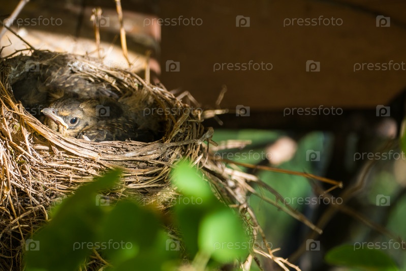 Гнездо с птенцом дрозда