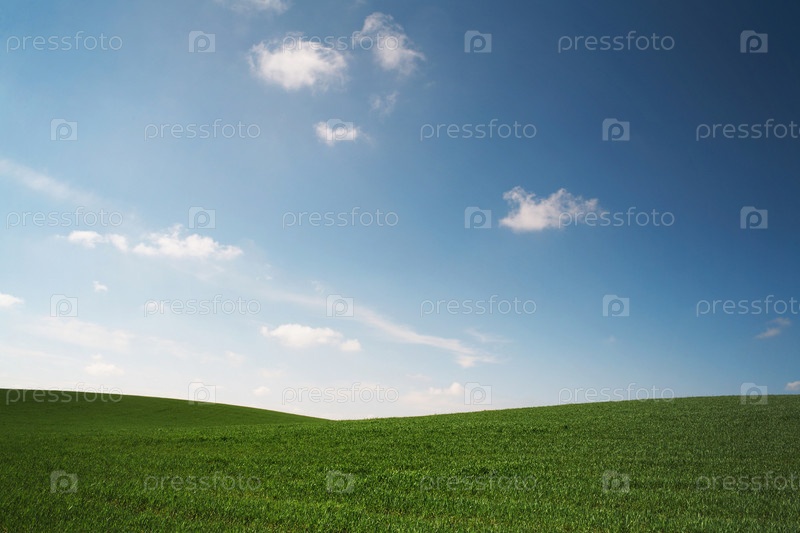 Зеленое поле на фоне голубого неба