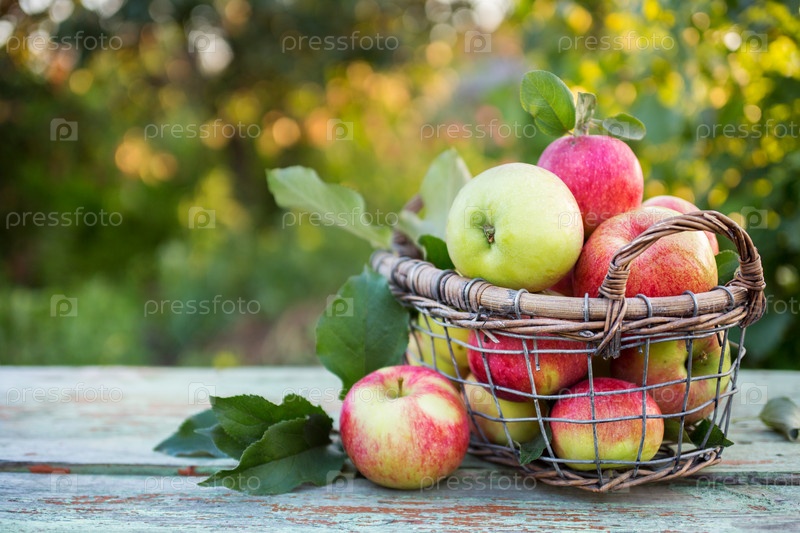 Свежие спелые яблоки в корзине