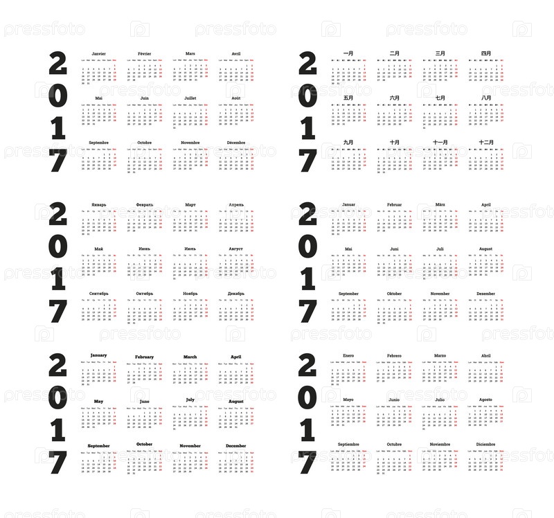 Набор простых календарей на 2017 год
