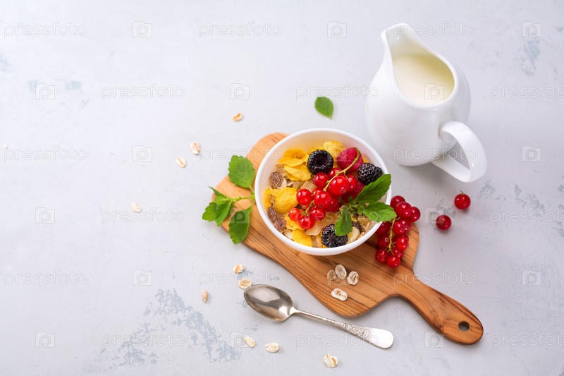 Вкусные мюсли с ягодами и молоком