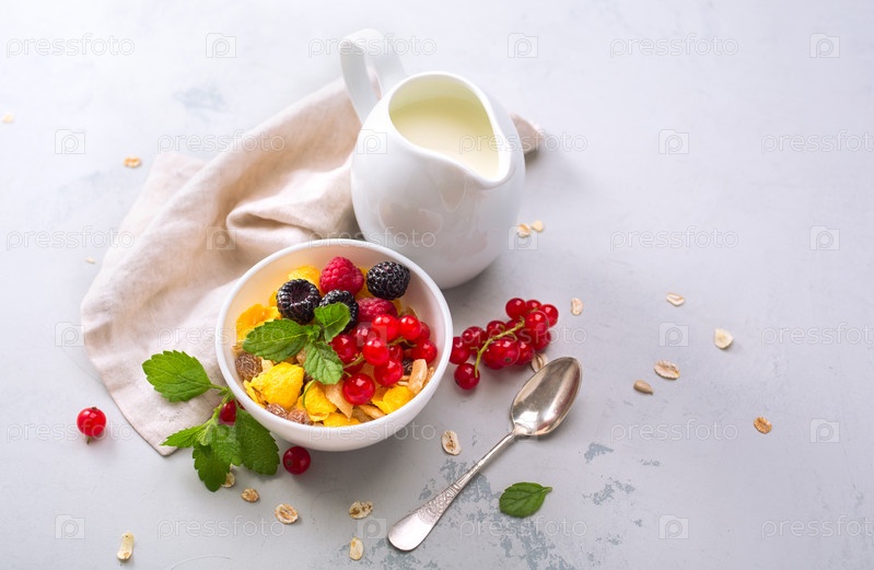 Вкусные мюсли с ягодами и молоком