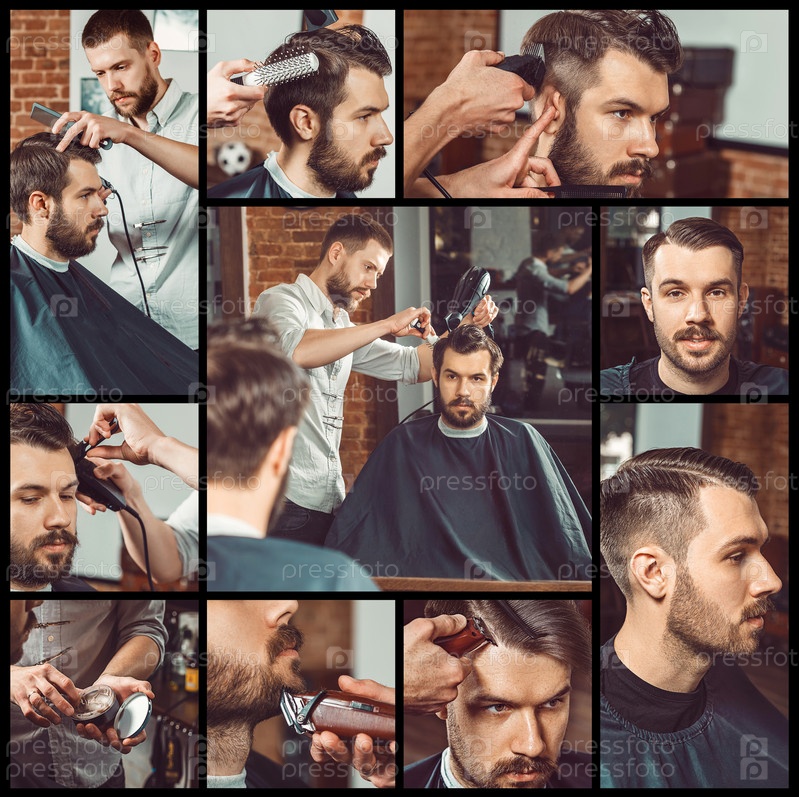 Парикмахер на работе. Коллаж