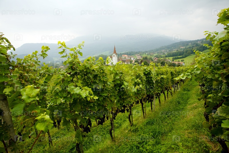 Виноградник и вид на деревню