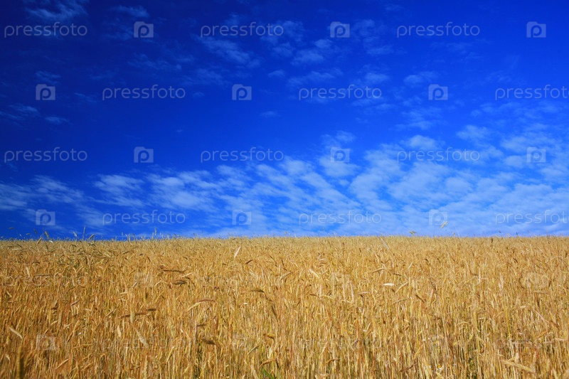 Злаковое поле под голубым небом