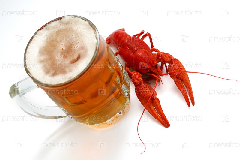 Кружка пива и рак на белом фоне