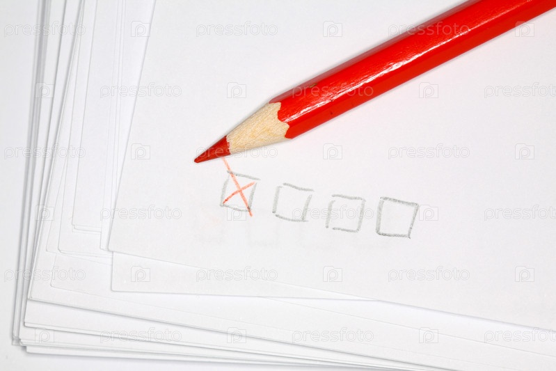 Красный карандаш на белой бумаге