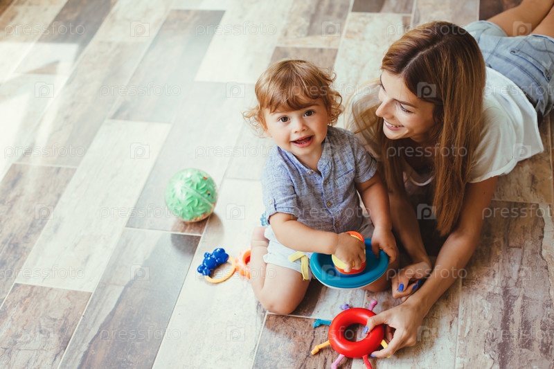 Играя с сыном на полу