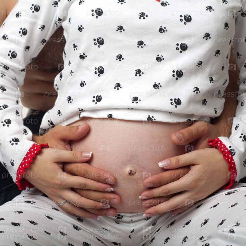 Живот беременной женщины с руками на нем
