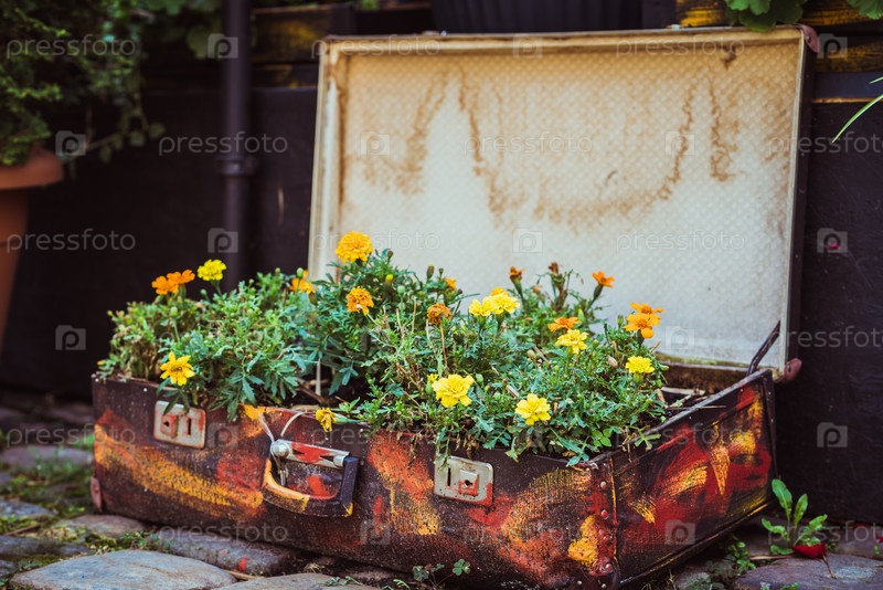 Старый чемодан с цветами