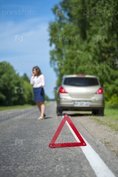 Аварийный знак перед машиной