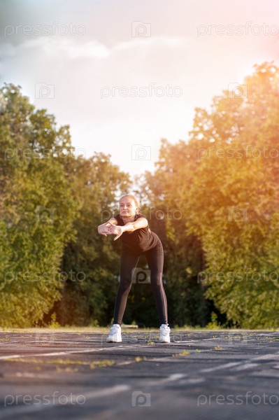 Девушка разминается перед пробежкой
