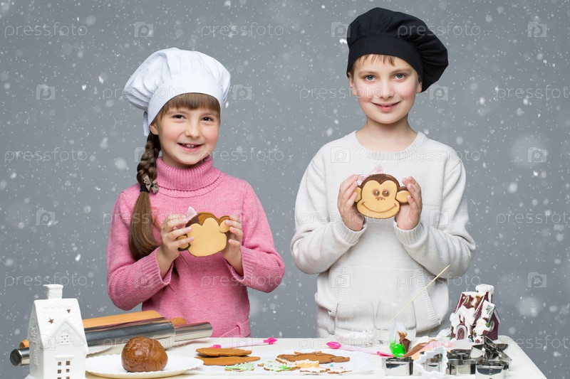 Дети готовят рождественское печенье