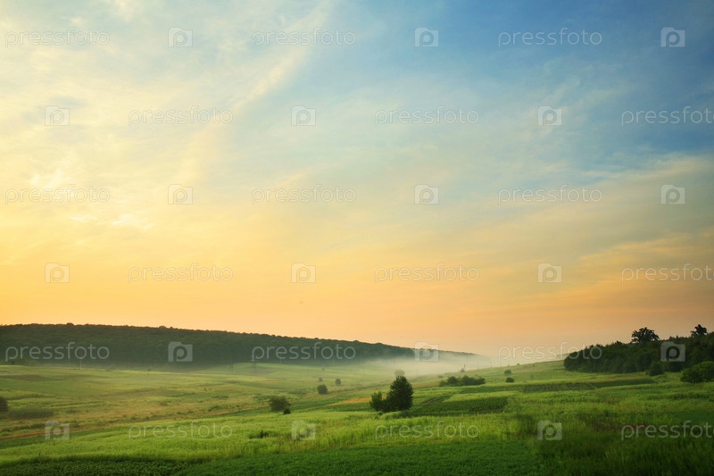 Туман над зеленым полем