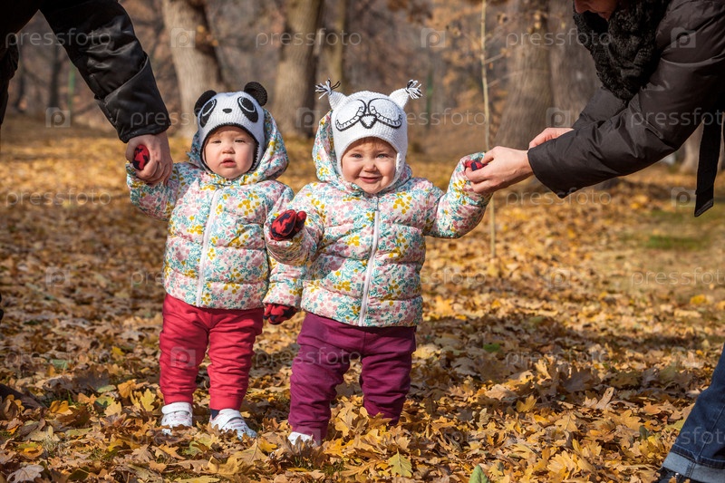 Две маленькие девочки в осеннем парке