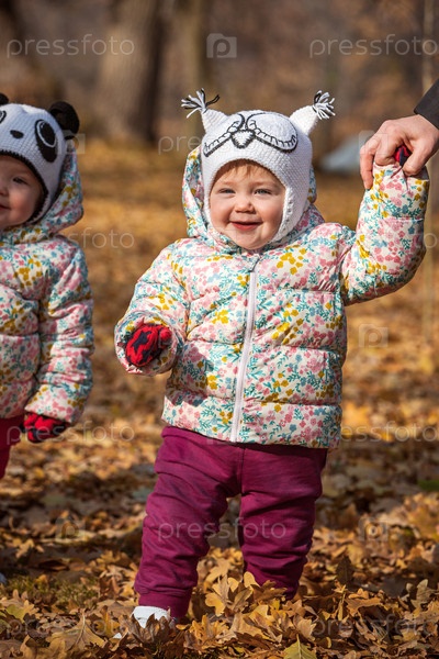 Две маленькие девочки в осеннем парке