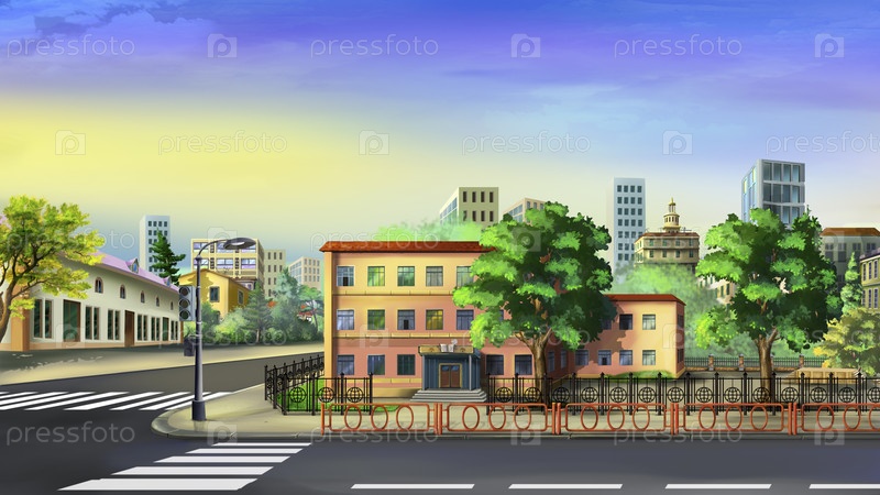 Городской пейзаж в летнее утро
