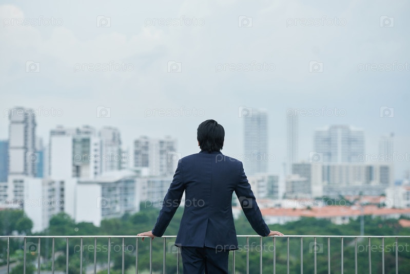 Бизнесмен смотрит на город