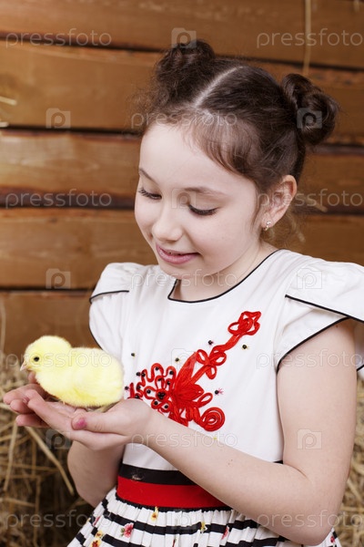 Девочка с цыпленком в руках