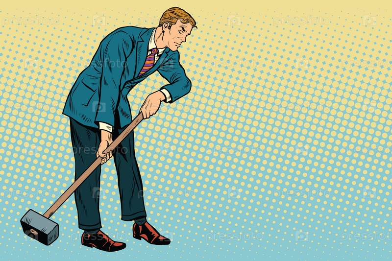 Ретро-бизнесмен с кувалдой