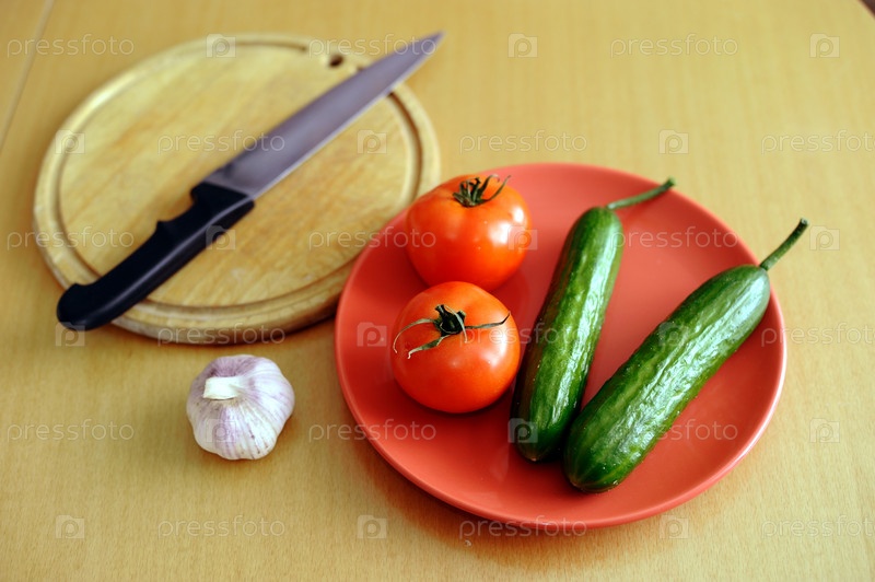Помидоры и огурцы на тарелке