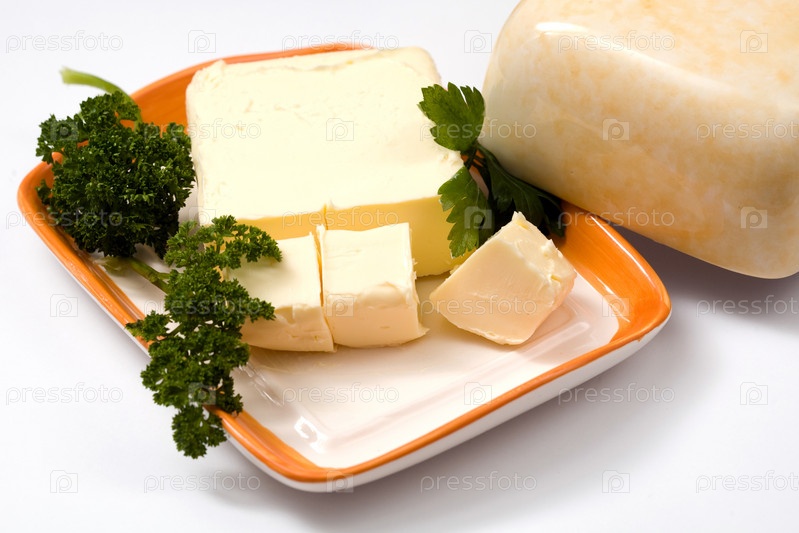 Масло и петрушка на тарелке