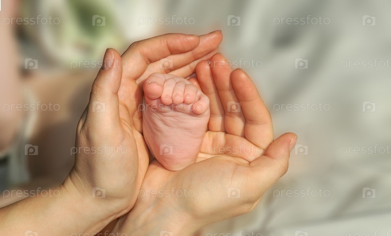 Нога ребенка в женских руках