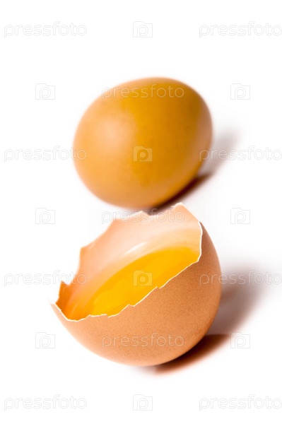 Разбитое яйцо на белом фоне