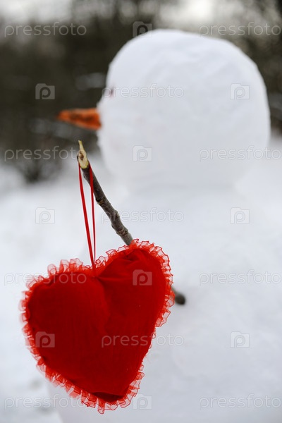 Снеговик с красным сердцем