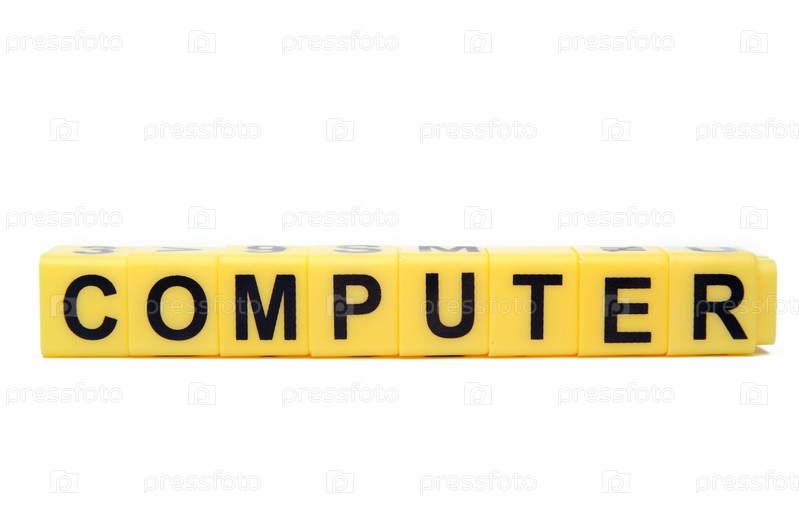 Желтые кубики со словом 'компьютер'