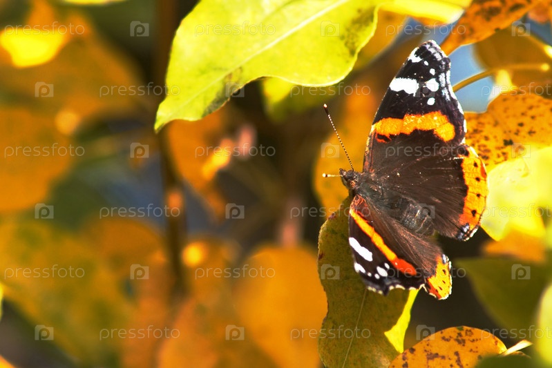 Бабочка среди желтых листьев