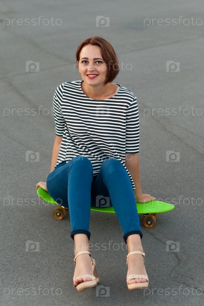Красивая молодая девушка со скейтбордом