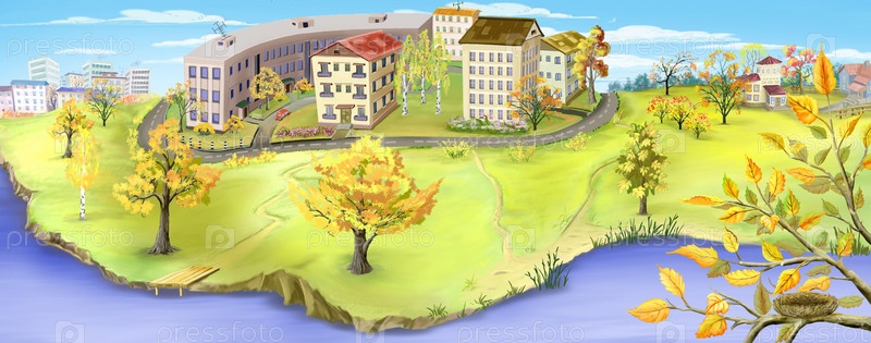 Вид на город в начале осени