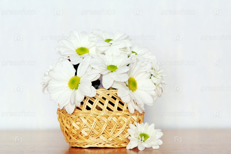 Белые цветы в корзине