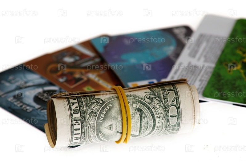 Рулон долларов и кредитные карты крупным планом