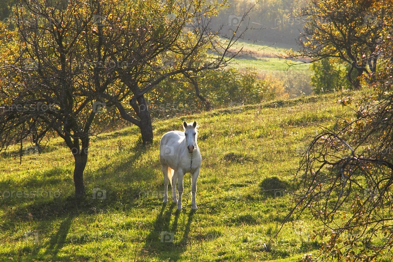 Белая лошадь в парке