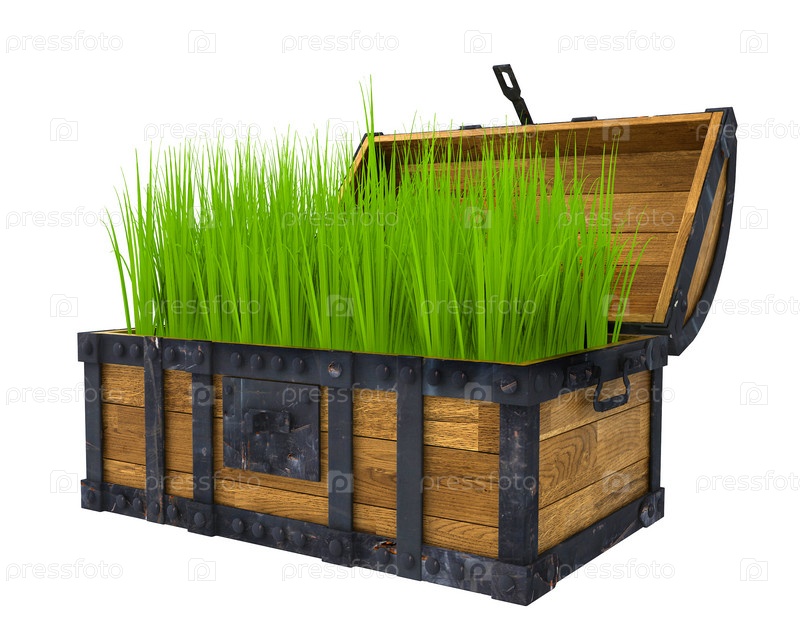 Старый сундук с зеленой травой